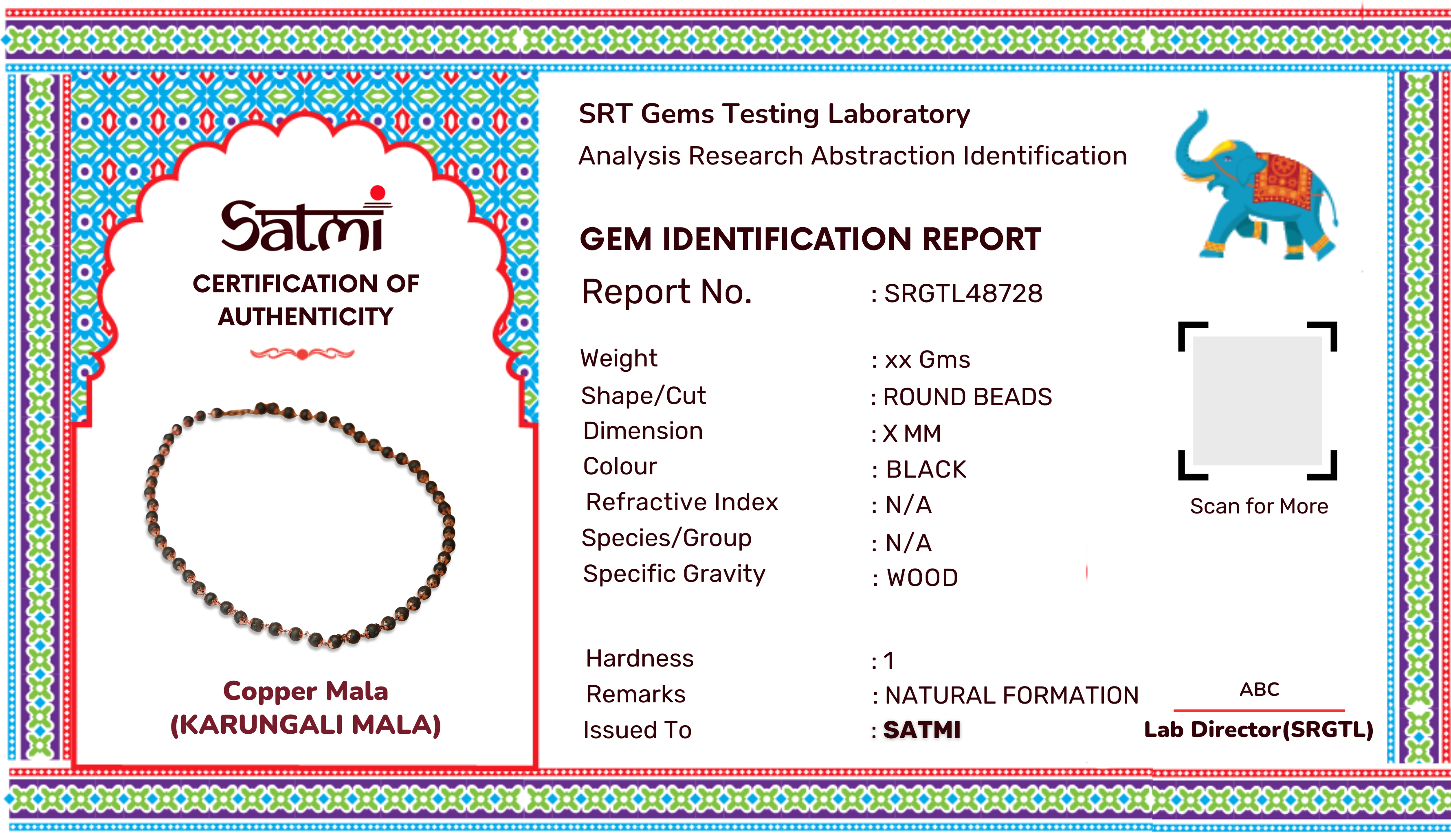 Each Karungali bead is hand-selected and polished under strict quality standards. The copper wire is strong and durable, and the Om Shiva Trishool pendant is carefully crafted for lasting detail. The product is government-certified, assuring authenticity and quality.