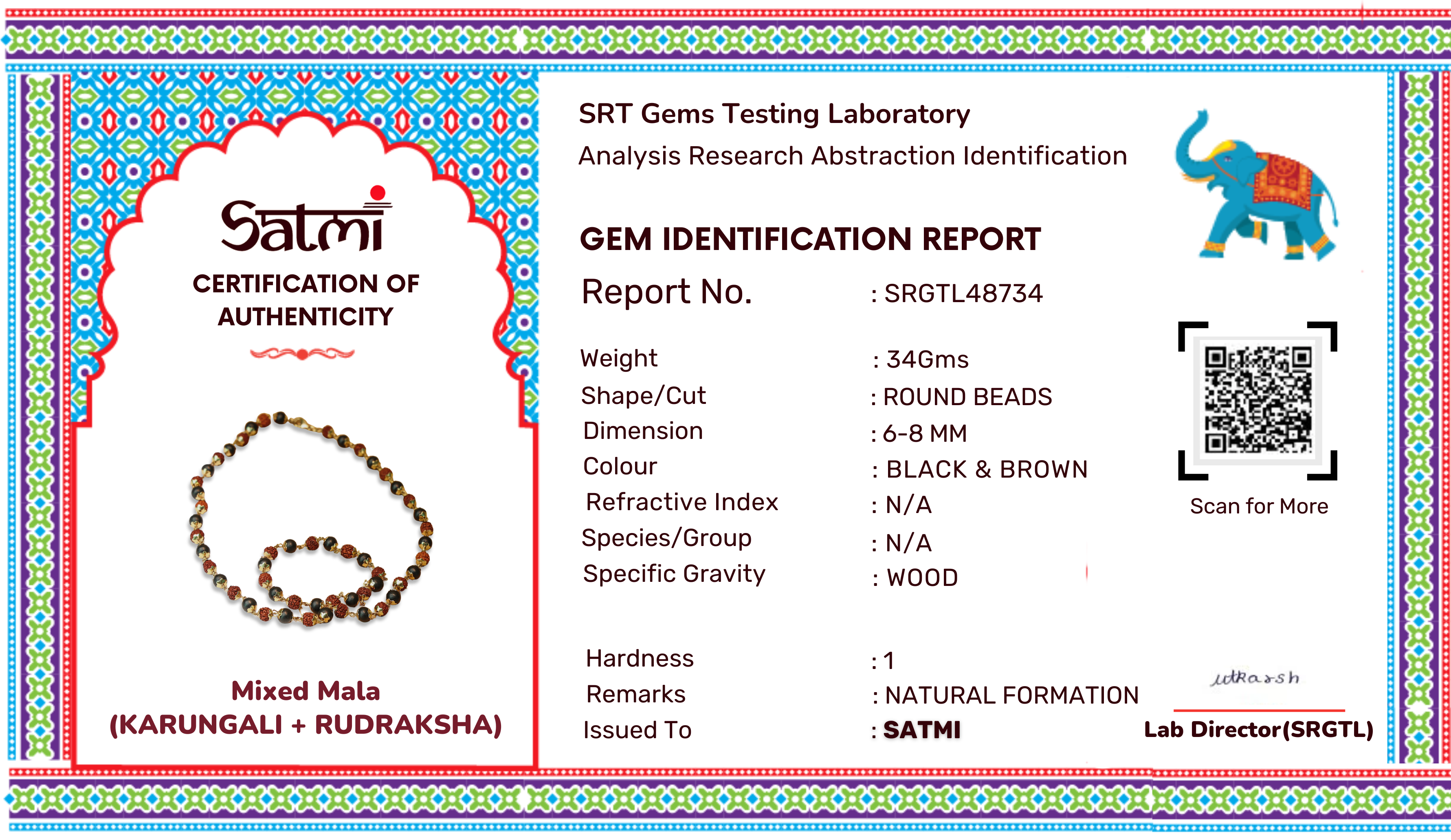 Every Rudraksha bead and Karungali wood bead is hand-selected and polished under strict quality standards. The Lord Murugan pendant is carefully crafted for lasting detail. The mala is government-certified and lab-tested, assuring authenticity and quality you can trust.